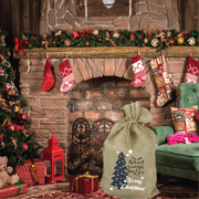 It's the most wonderful time of the year, Santa Sack, Made from jute material and screen printed, these make a perfect for your friends and family. They are available in 3 sizes and can be personalised.