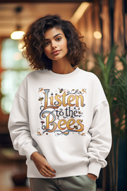 Listen to the Bees Sweatshirt. Great 100% organic sweatshirt for anyone who just love Bees. Made by Wildlife and Birdcare for the charity BUGLIFE supporting the small things that run the planet. Our sweatshirt are soft to touch, printed with DTF and are excellent quality.