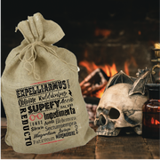Harry Potter Spells Santa Sack, personalised with any name or message. Made from jute material and screen printed. These make a perfect keepsake present. They are available in 3 sizes.