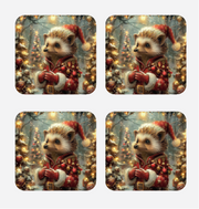 Christmas Hedgehog Traditional Coaster Set of 4 - Are you dressing your table for Christmas this year and would like to add this beautiful Christmas Hedgehog traditional design, presented on our square table mats and matching coasters. The coasters 90x90mm so perfect for all size of tables, big or small. The mats are hard backed coasters so they protect your furniture from heat and stains. Easily wipeable.