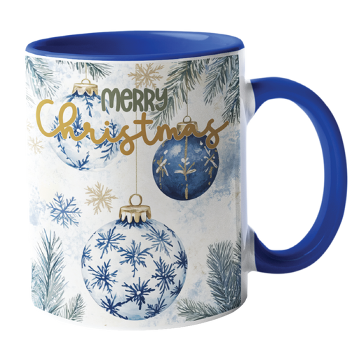 View full detailsChristmas Bauble Mug - Blue and White themed Bauble Mug with the words Merry Christmas in Gold. 11oz Two Tone Mug Sublimated Dishwasher Proof NOT...