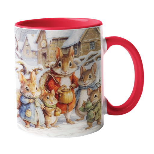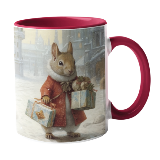 View full detailsVictorian Squirrel Mug - Beautiful illustrated Victoria Scene starring a mummy squirrel with presents in the snow Mug printed on a 11oz Two Tone M...
