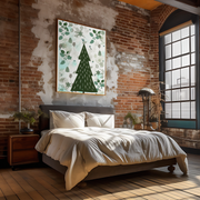 Tree Room Art Print of the original Fir Tree Room Art a beautiful abstract painting of a fir tree surrounding by leaves and foraged items. A super eco-friendly and sustainable panting, showing the work of autistic artist SJH Designs. This piece is A1 but other sizes are available as framed rigid art board.