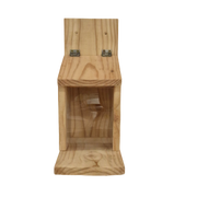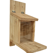 Squirrel Feeder - we call bushie by Wildlife and Birdcare -  Is a heavy-duty large 380mm in height squirrel feeder made from Larch from British Sustainable Forests Which offers the squirrels a platform to jump onto and an easy lift up lid for them to reach the tasty nut mix inside.  This food provides the squirrels with some extra nutrition on top of what they forage themselves and helps to keep them off your bird feeders.